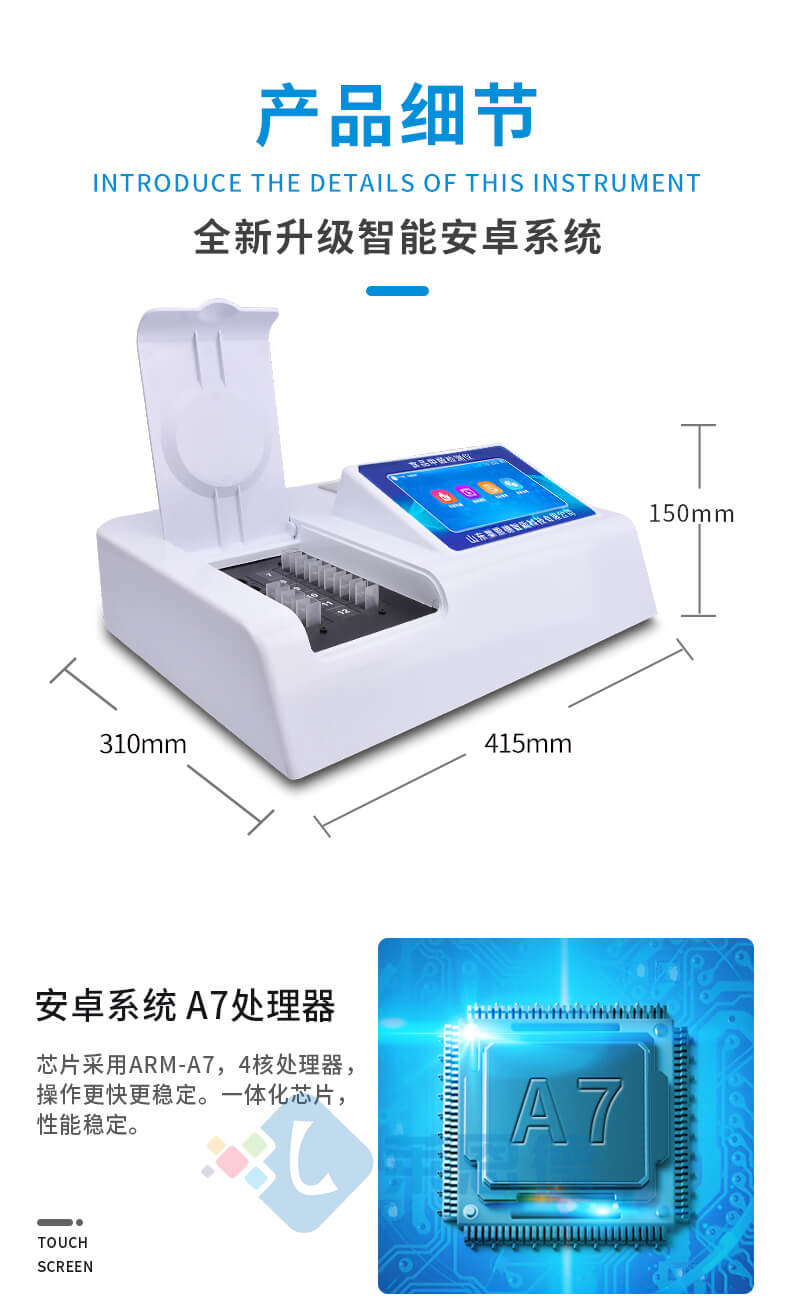 儀器構(gòu)成:由主機(jī)、樣品前處理器具和試劑盒等構(gòu)成,適于現(xiàn)場及實(shí)驗室使用。